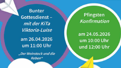 Wir feiern zwei Gemeindegottesdienste (10 Uhr und 12 Uhr) zusammen mit unseren Konfirmandinnen und Konfirmanden.